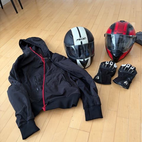 Komplett motorcykeludstyr – hjelm, jakke & bukser – str. S/M