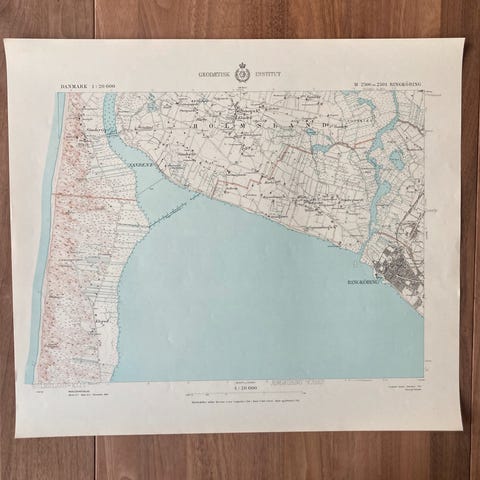 Vægkort fra 1949: Ringsted og omegn (perfekt stand)
