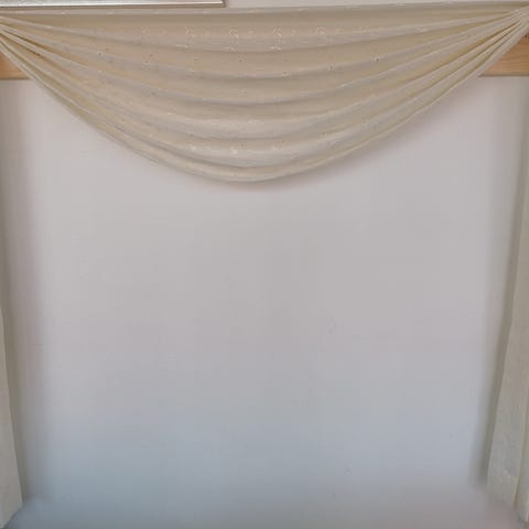 Let hvid polyester flagdug. Har kun været brugt som udstillingsmodel.