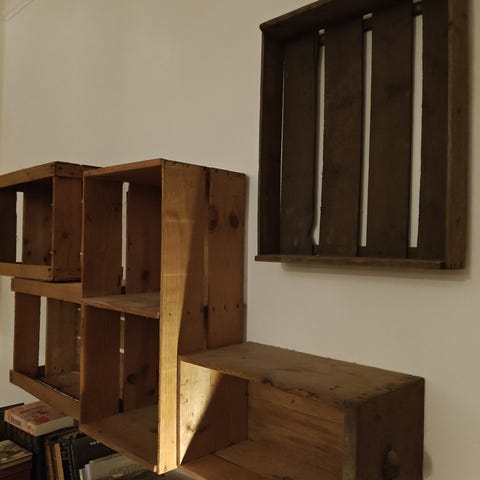 Opbevarings-kasser, Det gamle apotek, Stablekasser fra det gamle apotek med tinsoldater.