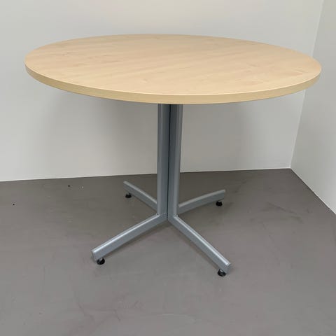 2 runde borde. Det ene med løs plade, det andet uden bordplade..