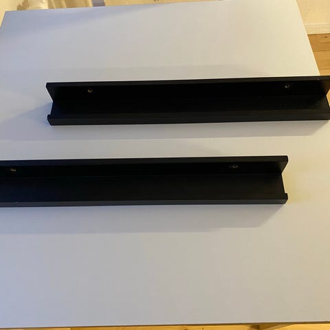 Sælger de her 2 stk. næsten som nye hvide billedhylder i træ med en bredde på 115 cm.