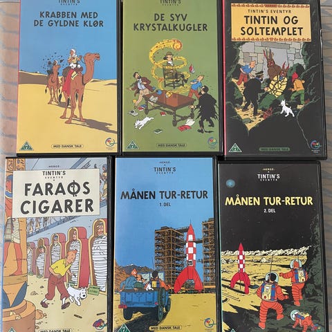 Tintin De Syv Krystalkugler VHS bånd med dansk tale. Klassisk tegnefilm baseret på den populære tegneserie. Velegnet til samlere og fans af Tintin-serien.
