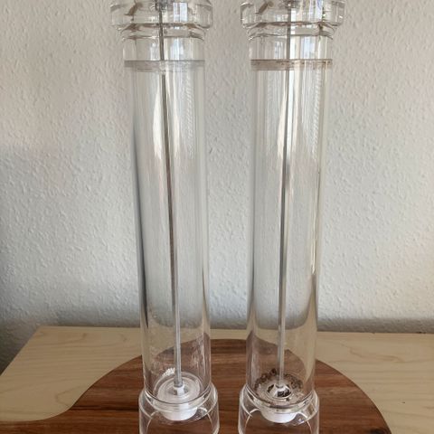 Salt og peberkværne, Fiskars, 2 flotte og gode kværnesæt i lakeret bøg fra Fiskars. 16 cm høje og kværner godt. Sælges til fast samlet pris for alle 4 + evt dao fragt.