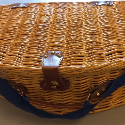 PICNIC TROLLEY THERMO KURV, b: 45 l: 30 h: 48, HYGGELIG PICNIC TROLLEY MED INDBYGGET ISOLERET THERMO RUM, MED LYNLÅS, RUMMET ER 30 CM DYBT, LÅGET ER MED KNIVE, GAFLER OG SKEER. TERNEDE DÆKKESERVIETTER. SKUFFE I BUNDEN MED VINGLAS OG TALLERKENER. MED HJUL, OPSLÅET 96 CM HØJ. LUKNING PÅ FRONT MANGLER DEN LILLE LUKKETING, MEN FOR DEN KREATIVE KAN SKADEN LET LAVES OG UDBEDRES(SE BILL.).