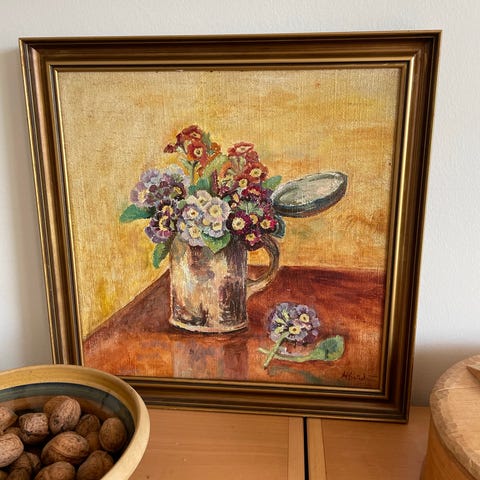 Oliemaleri med blomster motiv.
