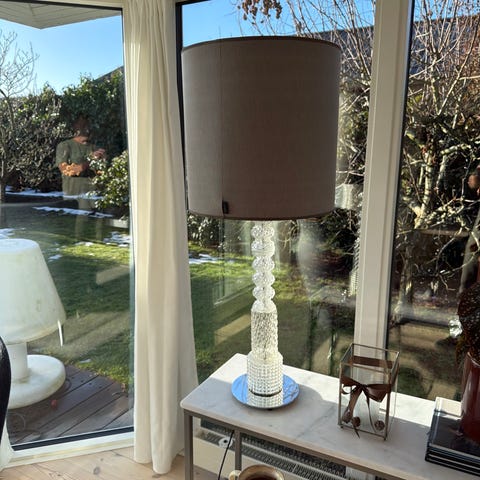 Lavet til speciel lejlighed. One of a kind. Passer til både loftslampe og bordlampe.
