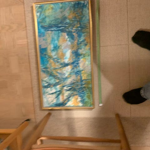 Flot maleri i smukke farver. 30x40 + ramme. BYD.