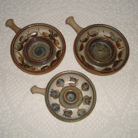 De er fra Erica-Serien, og er håndlavet. Har fine grønne og brune nuancer.