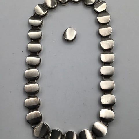 Georg Jensen Sterling Sølv /18 kt Guld Halskæde No. 394 Lene Munthe Måler 42 cm (16.53 inch) Vægt 80.39 gr (28.36 oz)