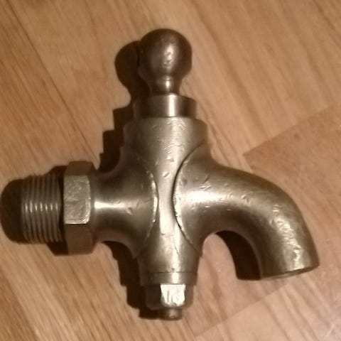 Tappehane til øltønde af metal. Længde 15 cm. Højde 11 cm