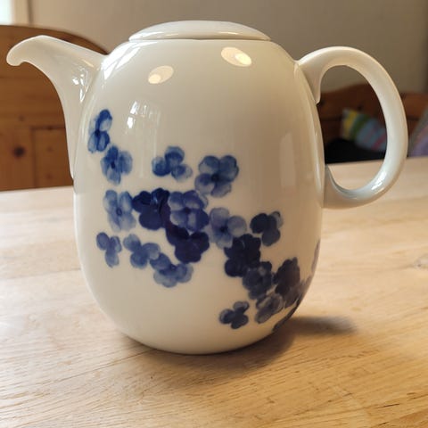 Ovalt fad. Bing & Grøndahl porcelæn, TROJA. NYT og ubrugt. Har stået i skabet siden 1980´erne. Glat hvidt med håndmalede blå blomster, så alle er lidt forskellige. Jeg har flere annoncer med Troja.