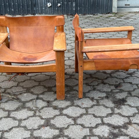 2 x Karin Mobring loungestole model “Natura” i kernelæder og fyrretræ fra 1970’erne