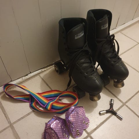 Kun den ene rulleskøjte er lidt brugt indenfor