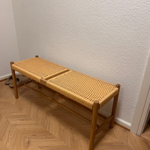 Super fin bænk med plads til 4 par sko under med 2,6 massivegetræsplade på.