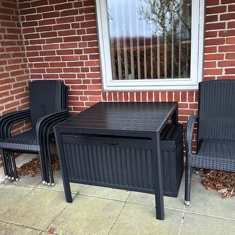 Vi sælger vores havemøbler samlet. De er købt i Bilka i maj 2014 og kvitteringen er med på billederne.