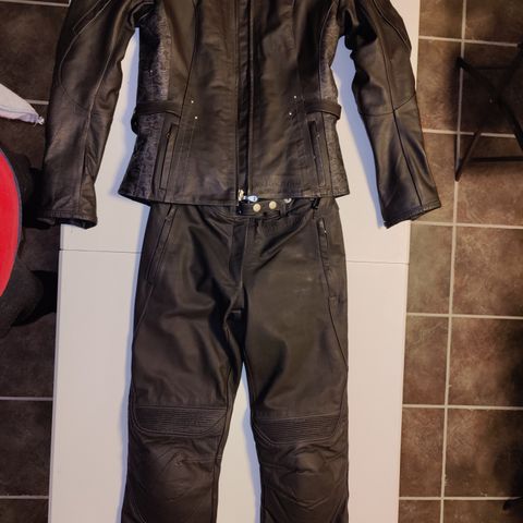 Halvarsson , str. 40 S, Ældre 2 delt Halvarssons læderdragt sælges. Beskyttelse på skuldre, hofter, albue og knæ. Også beskyttelse i ryg. Fejler intet. Har ikke været i styrt eller andet. Passer til person på ca 168 cm og 50-55 kg.