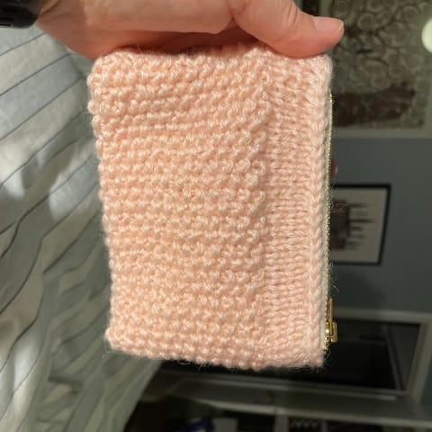 Skøn bubble bag/ bubble clutch hæklet i dobbelt akryl med lynlås. Forside er regnbuefarvet og bagsiden er lyserød. Måler ca 18x23 cm