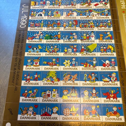Hele ikke foldet ark. Folkegaven 1995 samt julemærker fra: