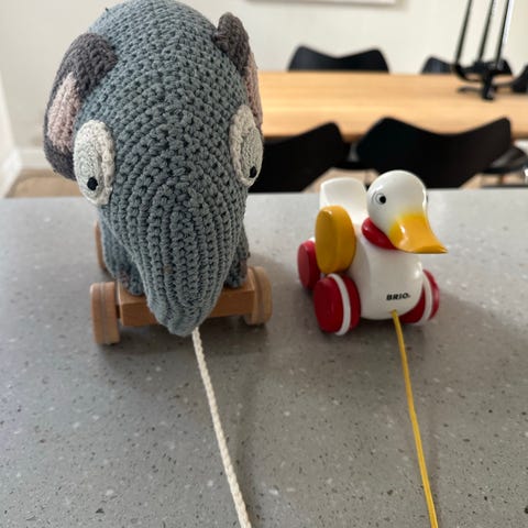 Vintage Brio træk and/trækdyr af bemalet træ