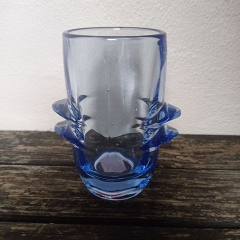 Sjove rustikke glasflasker i dyb blå. Ca 21 cm høje. Kan bruges som vaser, vandkarafler eller lign. Pris pr stk, 40,- kr.