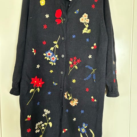 Lækker blød og varm cardigan fra DawnxDare i smukke pastelfarver. Den har en god længde og lange ærmer med lidt guld i kanten ved ærmer. Kun brugt ganske få gange og derfor i velholdt stand. Dog måtte jeg sy et lille hul i det ene ærme i armhulen, se billeder. Sælges da jeg ikke bruger den længere og det er synd den bare skal hænge i skabet, for den er virkelig flot og skøn at have på. Købspris som ny var 4.000 kr.