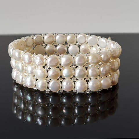 Armbånd, halvædelsten, Ferskvandsperler, Ferskvandsperler armbånd med elastik så den er nem at tage af og på. Armbånd er elastik og passer til et 17-19 cm. håndled. Men jeg kan også gøre det mindre eller større, hvis passer det ikke din håndled. Armbånd ferskvandsperler natursten perler. Rigtigt flot og elegant armbånd med 25 smukke perler. Perlestørrelsen er 8 mm. Unisex - flot til både fyre og piger / mænd og kvinder. Hvis du har ikke mulighed kom forbi så kan jeg send med dao + fragt.
