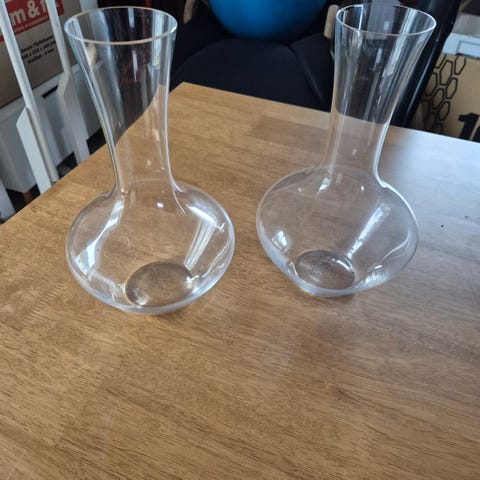 Sælger samlet 2 stk karafler fra Spiegelau. Brugt 1-2 gange og står bare og fylder i skabet... Højde ca 25 cm.