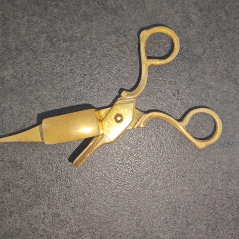 Vintage saks i messing med dekorativt design. Fremstillet i messing, ideel til dekorative formål. Unikt håndværk med detaljeret udformning.