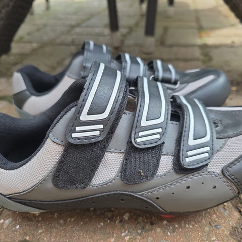 Super lækker kvalitets sko. Brugt en gang kort, så fremstår stort set som nye. Leveres med klamper, som passer til stort set alle fitness centre. Indvendigt mål 23.5 cm.