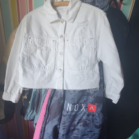 Hvid denimjakke med knapper str 128. I god stand. Ingen slidtage.