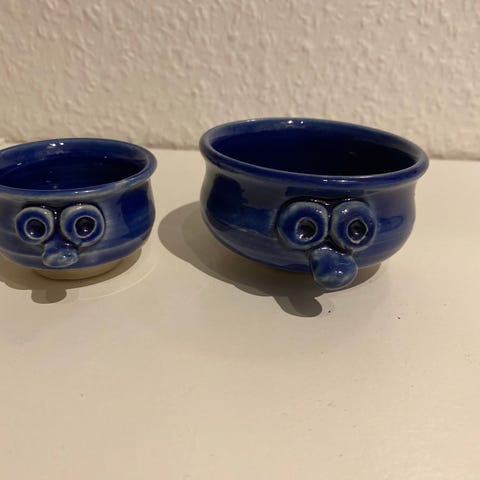 Græsgrøn på ydersiden og hvid indvendig med fine krakeleringer. Diameter: 10 cm Højde: 8 cm. Hjemmelavet😊