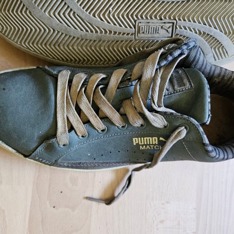 Brugt begrænset, men er lidt støvede, da de har stået på en hylde. Størrelse 42,5 svarende til 27,5 cm.