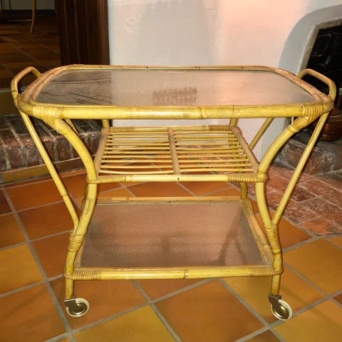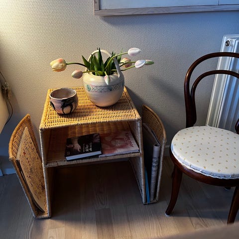 Smukt og helt særligt fletmøbel fra 60'erne eller 70’erne i robust flet. Brug det som sofabord, bænk eller lavt konsolbord til udstilling af dine yndlingsting. Det fremstår i flot vintage stand med naturlige alderssvarende brugsspor, der dog ikke betyder noget for den samlede oplevelse af et virkelig lækkert og blæret møbel.