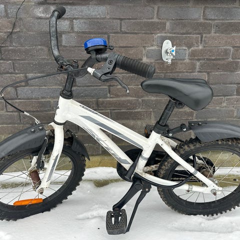 Brugt men køre godt. Fantastisk begyndercykel. Hvis det har interesse kan jeg se om vi stadig også har støttehjul dertil. Det fede ved denne cykel er at den er alu og derfor relativt let, så den har været let at køre på fra starten af.