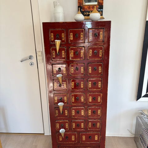 Sort. Brugt med små brugspor, som kun gør skabet mere autentisk.