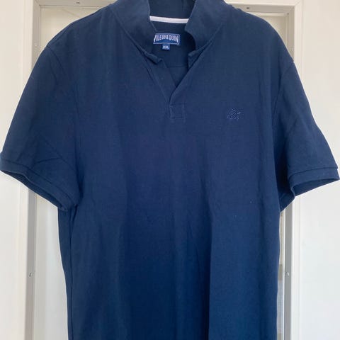 Den ikoniske Poloshirt med korte ærmer og skildpadden på brystet fra Vilebrequin. Lille i størrelse - svarer mere til XL. Meget velholdt. Kan sendes efter aftale.