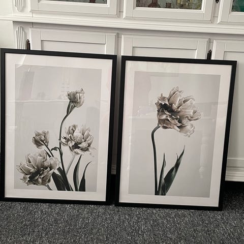 Plante og blomster plakater i ramme.