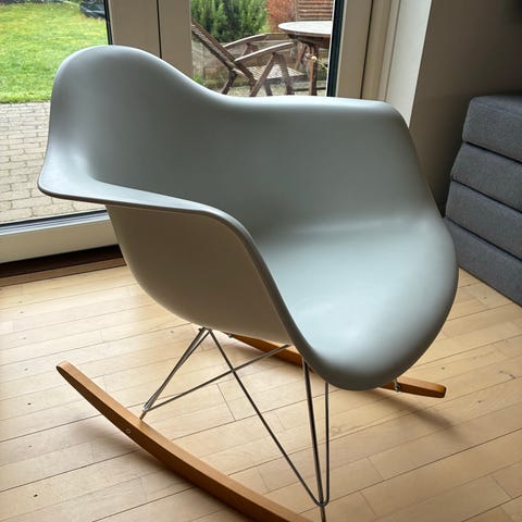 Eames RAR gyngestol i hvid plast. Fin stand med få brugsspor. Nypris 5500 kr. sælges meget billigt