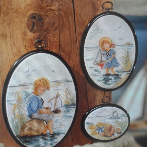 Fint broderet billede måler 45 x 35 cm. incl. ramme.