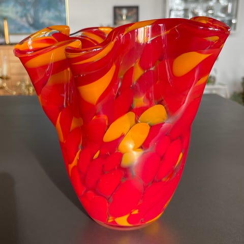 Fanø Glaspusteri 19,5 cm sandblæst grøn vase v/ Charlotte La-Cour Hansen