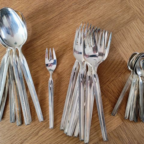 Bestik af sølvplet af mærket ballerina, så vidt jeg kan læse mig frem til. Har alm. brugsspor i form af småridser.