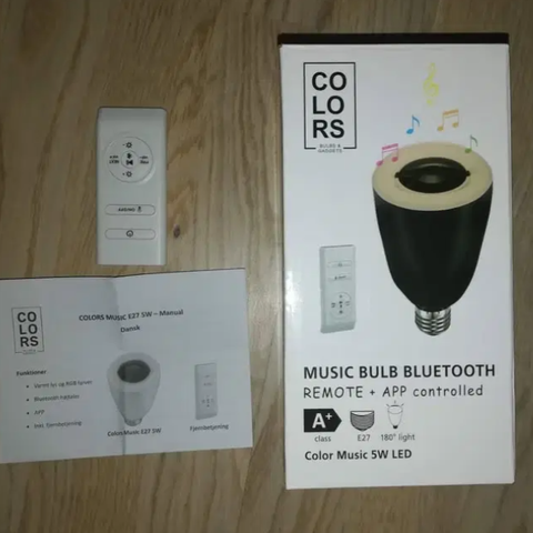 Bluetooth højttaler med lys. Købt på Mallorca, da vi manglede en lille højttaler på vores ferie.