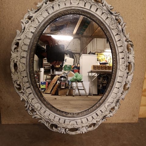 Sødt gammelt rundt spejl bemalet (antik blå)