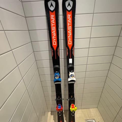 Alpinski, DynaStar (Rossignol), str. 165cm. Meget aggresiv Carvin slalom ski med en radius på 12m (R12). Extrem sjov at stå på. Flydende 3D Dynastar bindinger både foran og bagved. Fin sål med kun 1. slibning. Er fra 2012 men har desværre ikke været på ski de sidste 10 år. Med Leki Carbon skistave til højde 180-185. Skipose med låsninger medfølger .. Nyprisen tør jeg slet ikke tænke på ..