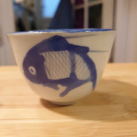 Fiskemotivet er brugt i århundreder i Kina. Lyden af ordet for fisk er samme som velstand, så med et fiskemotiv i en skål , er det ønsket om at den altid må være fyldt med mad. Det er altså ikke et fiskeservice. På gammel kinesisk keramik er der sjældent tegn. Men en uglaseret bund og en hvid glasur med “prikker” tyder på alder.