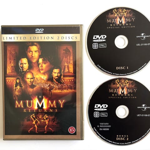 Universal The Mummy DVD Special Edition. Indeholder bonusmateriale og er velegnet til filmelskere, der ønsker en klassisk eventyrfilm med ekstra indhold. DVD'en er i standard format og kompatibel med de fleste DVD-afspillere.