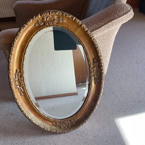 Smukt gammelt ovalt spejl
