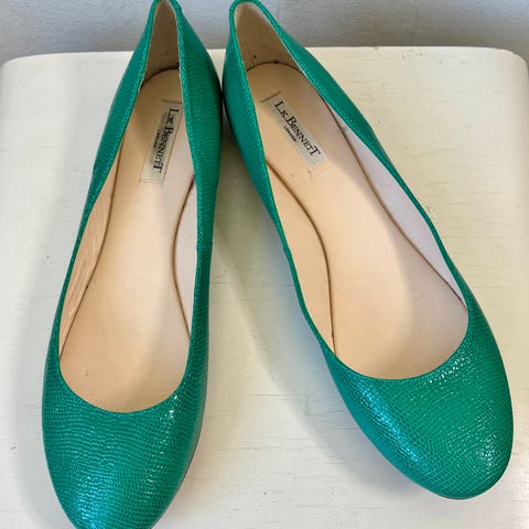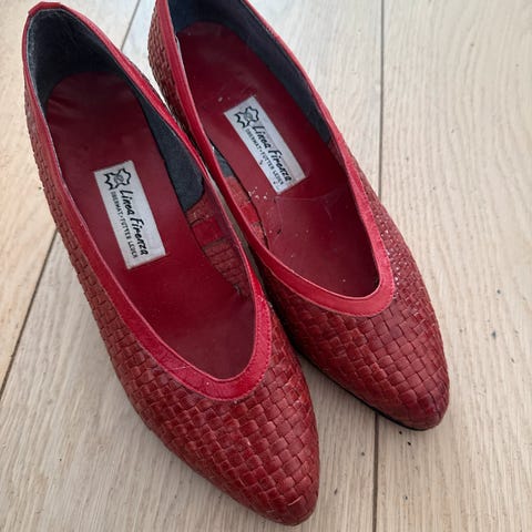 Sorte ruskindsballerinaer med spids snude og perlebesat hæl. Brugt meget få gange. Intet nævneværdigt slid. Tro mod størrelsen.
