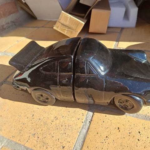 Figuren ligner en udgave af en klassisk Porsche Boxster, især med dens proportioner og den måde, taget og forruden er udformet på.